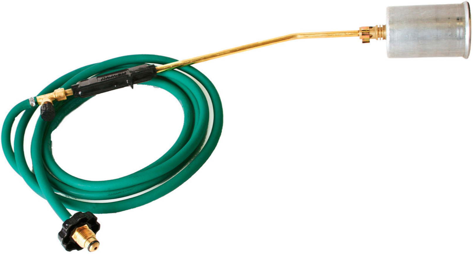 Chamusquero de fierro con diámetro de 3" y manguera verde con diferentes largos y conexión para tanque de 2 kg hasta 30 kgs. butano/propano